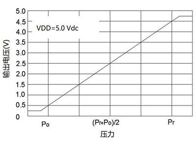 | OUT=A×P B atentie: OUT este tensiunea de ieșire analogică, măsurată în volți; P este valoarea presiunii, presiunea absolută, în kPa; Consultați tabelul de mai jos pentru A și B. |